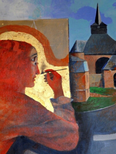 immagine: Arcabas, L’angelo paesaggista (particolare). Si noti il “terzo occhio” dell’angelo.