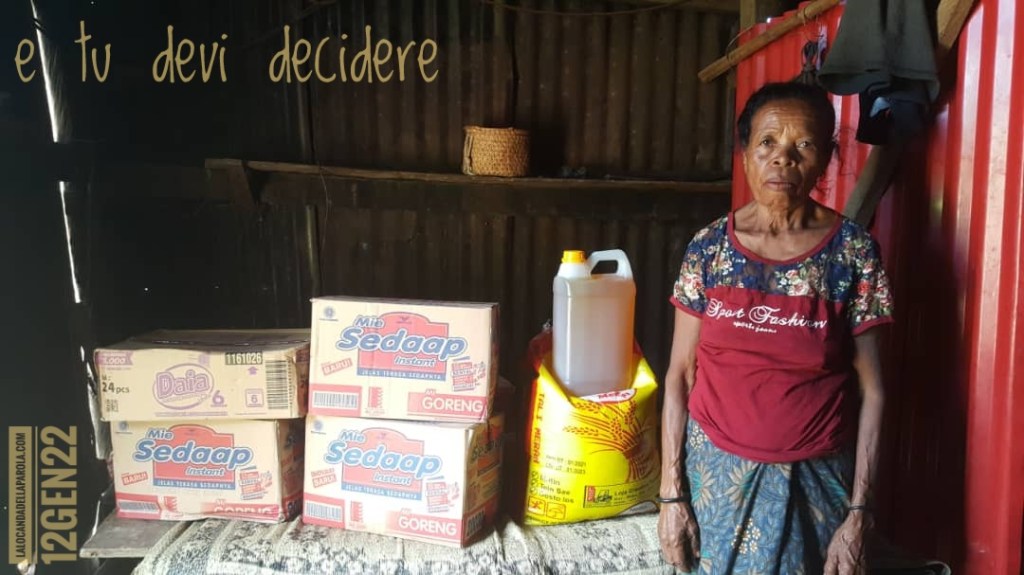 Ieri, al mattino presto, quando ancora era buio, è suonata la sveglia per andare al lavoro. Nel telefono, questa foto attendeva d’essere guardata. È stato il primo sguardo della giornata che ho incrociato. Quel volto che mi fissava da lontano mi ha accompagnato fino a sera. Quella donna, i braccialetti neri ai polsi a dire lutto, la casa di lamiere. Che miseria! Ma accanto a lei, l’amore. Un sacco di riso, una tanica d’olio, tre scatole di noodles e una di detersivo. Qualcuno si è preso cura di lei. La catena dell’aiuto è arrivata, da voi fin laggiù, a Timor, passando da me e dai giovani di là. Gesù, lo dice il vangelo di oggi, guarì molte persone. Non risolse tutti i problemi del mondo, ma fece vedere al mondo che si può. Si può amare, ci si può prendere cura di chi è lì, davanti a te, e ti guarda. E tu devi decidere se agire o dir che ha colpa Dio che non fa nulla.
