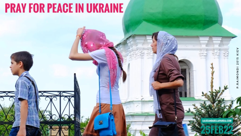 Fino a ieri questa foto era solo un ricordo. L’avevo scattata a Kiev nel 2015, durante una missione d’aiuto ai rifugiati del Donbass. Una giovane volontaria della Chiesa Ortodossa ci aiutava con la burocrazia per sdoganare il camion di alimenti. Quel pomeriggio torrido lei non sapeva che il giovane poliziotto con cui aveva a che fare, sarebbe stato suo marito. Si conobbero così. Ieri l’ho sentita dopo anni. Sono in un villaggio fuori Kiev, con due bambini molto piccoli. Sentono le bombe avvicinarsi. L’uomo non divida ciò che Dio ha unito.