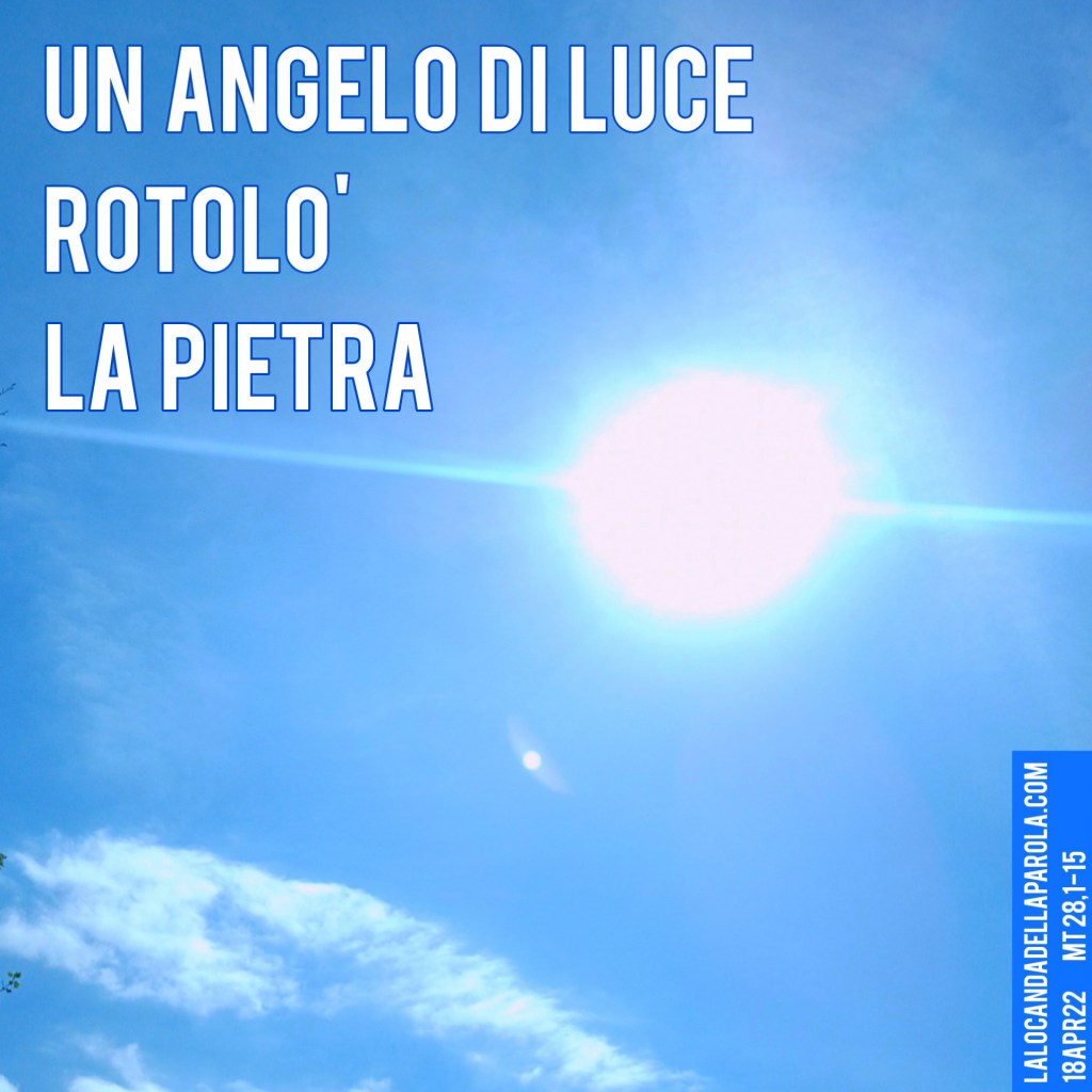Una scena quasi comica, che si fa beffe delle forze umane. Un angelo, puro spirito, privo di peso, che rotola la pesante pietra e vi si siede sopra come a dire “ora non la muove più nessuno”. Le guardie che, non potendo nulla contro chi non ha corpo, svengono di paura. E poi, ovviamente, ancora soldi, ancora in mano ai sacerdoti. Questa volta non per pagare Giuda, ma per comprare il silenzio delle guardie. Soldi sprecati anche stavolta. Perché se questo fatto è scritto qui, qualcuno la bocca non la tenne chiusa… Pietre, armi, denari e bugie. Tutto è inutile davanti alla luce.