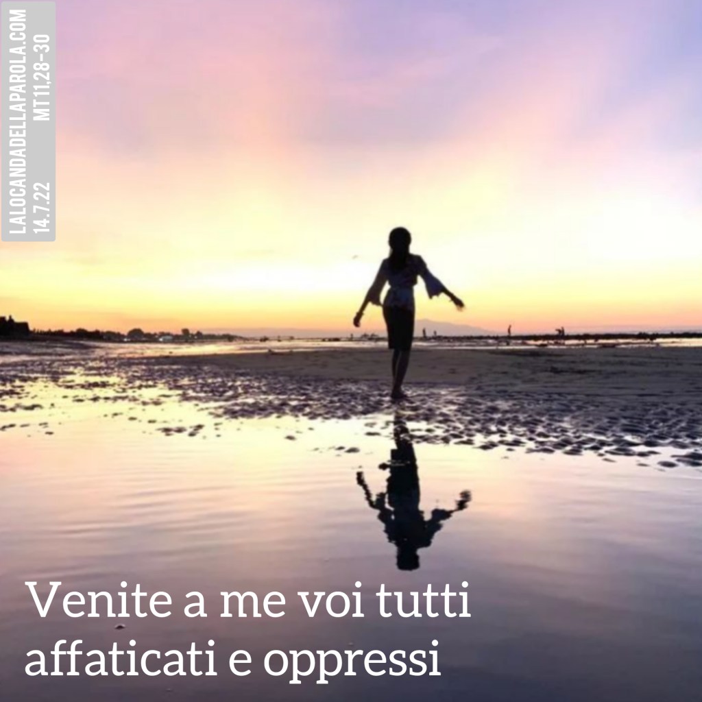 Sarebbe veramente bello poter dire le stesse parole a chi vediamo soffrire o anche semplicemente annaspare sotto il peso della giornata: Vieni a me e troverai ristoro. Sarebbe bello anche soltanto non essere noi il peso e la stanchezza che gli altri devono portare. Insomma, se non possiamo sollevarli, almeno tentiamo di non aumentare le loro fatiche. Mettiamo le nostre preoccupazioni e i nostri malumori direttamente nelle mani di Gesù, in un dialogo interiore che forse da troppo tempo abbiamo abbandonato. Ci ricordiamo ancora come si fa? Forse l’ultima volta che gli abbiamo parlato come fosse lì, visibile, eravamo bambini. Forse non l’abbiamo mai fatto. Cominciamo!
