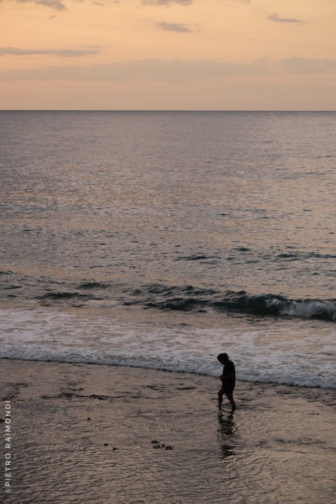 da DILI, TIMOR EST Alcune cose non si capiscono con i ragionamenti, ma della razionalità noi abbiamo bisogno. È proprio ragionando che comprendiamo i limiti della ragione. Poi vi è un oltre, un oltre che ti viene rivelato. Un che di intuizione, ispirazione, sentimento profondo. Un qualcosa che non ti spieghi ma che sai essere profondamente vero. Pare che sia apprezzabile solo ciò che ha una finalità produttiva, ciò che va ad aumentare il profitto. Quale profitto e di chi? Cosa andiamo cercando? Perché ci sentiamo più felici quando godiamo della presenza altrui senza altra finalità? Perché c’è più gioia nel dare che nel ricevere? Quando la nostra vita si semplificherà? Siamo come la donna in foto. Siamo piccoli in riva al mare, in cerca di qualche mollusco con cui arricchire il riso bollito. Se troveremo, saremo grati. Altrimenti avremo goduto di camminare nell’acqua d’oro del tramonto.