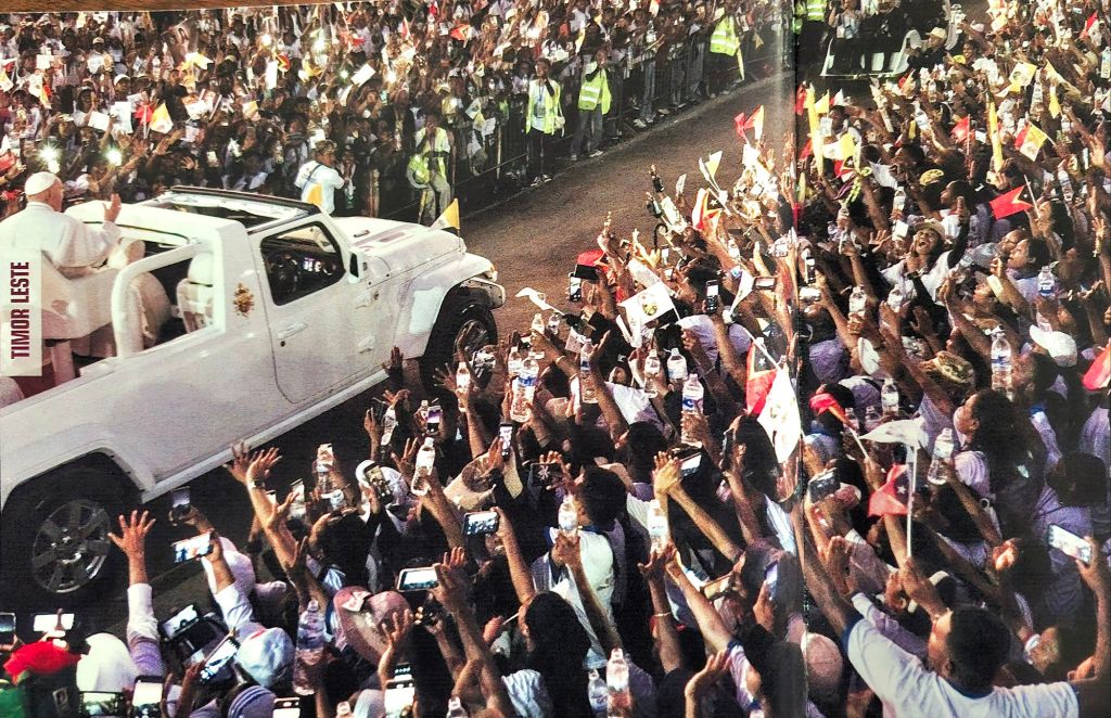 In foto: Papa Francesco a Timor Est, settembre 2024, durante il suo ultimo e più lungo viaggio. I giovani espongono bottiglie d’acqua perché resti benedetta al suo passaggio. Questo è stato ed è Papa Francesco: una fresca sorgente di speranza.