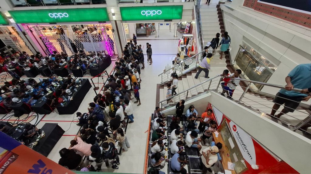 DILI, TIMOR EST Non mi piace il Timor Plaza, l’unico grande centro commerciale della città, ma se si vogliono prelevare soldi senza perderli è l’unico luogo affidabile. Vi si svolgono spesso eventi che attraggono centinaia di giovani assetati di vita moderna, stufi di capanne e riso. Ieri mattina era in corso un torneo di videogame a squadre. Ogni squadra con la stessa maglia, ogni giocatore in cuffia alla sua postazione con tanto di ventilatore. Roba seria insomma. Ovunque erano assiepati spettatori. Naturalmente era un’ennesima occasione per pubblicizzare cellulari. Nulla di nuovo, tutto il mondo è così. Ma guardate l’angolo in basso a destra, nella foto. Un gruppo volta le spalle all’evento, non si cura dei campioni di cellulare. È la squadra della realtà, la squadra della vita senza illusioni. Sono in attesa alla MoneyGram, l’agenzia che consegna i contanti inviati dall’estero. Ognuno di loro ha un parente, un amico, forse uno di voi che – tramite me – ha spesso inviato aiuti qui dall’Italia. Non si può fuggire dalla realtà, per quanto ci si impegni a nascondere la testa nel cellulare come uno struzzo sotto la sabbia. Nulla vi è di nascosto che non sarà svelato né di segreto che non sarà conosciuto. La miseria uccide il corpo ma, se non si trasmette altro che consumismo occidentale, ucciderà anche l’anima.