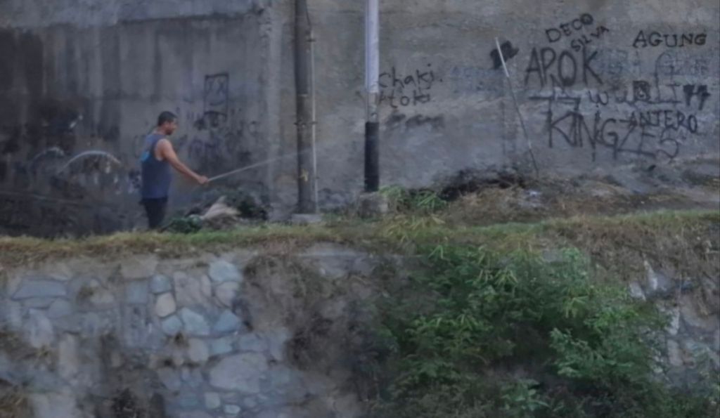 DILI, TIMOR EST Ieri, dall’auto, ho notato questo uomo intento a bagnare la strada sterrata per ridurre un poco la polvere. Allargando lo sguardo però la scena aveva un che di tragico comico, come potete vedere.